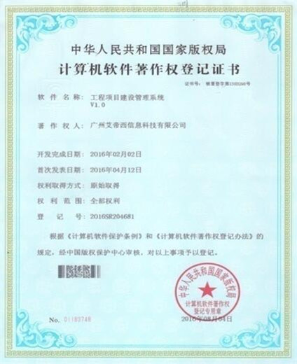 计算机软件著作登记证书